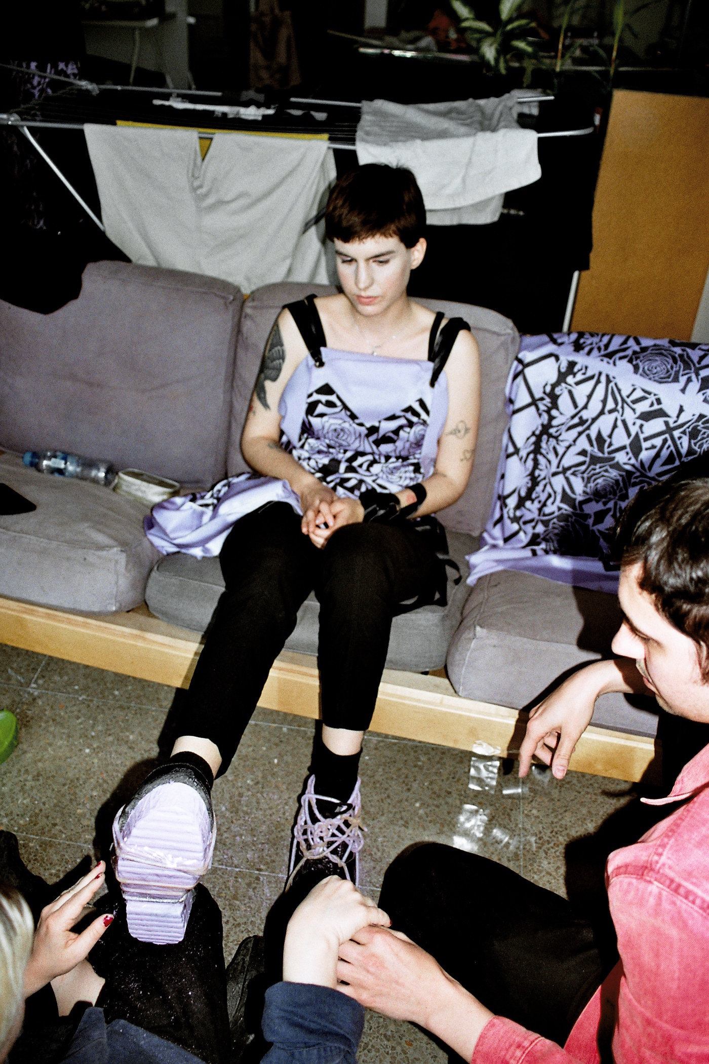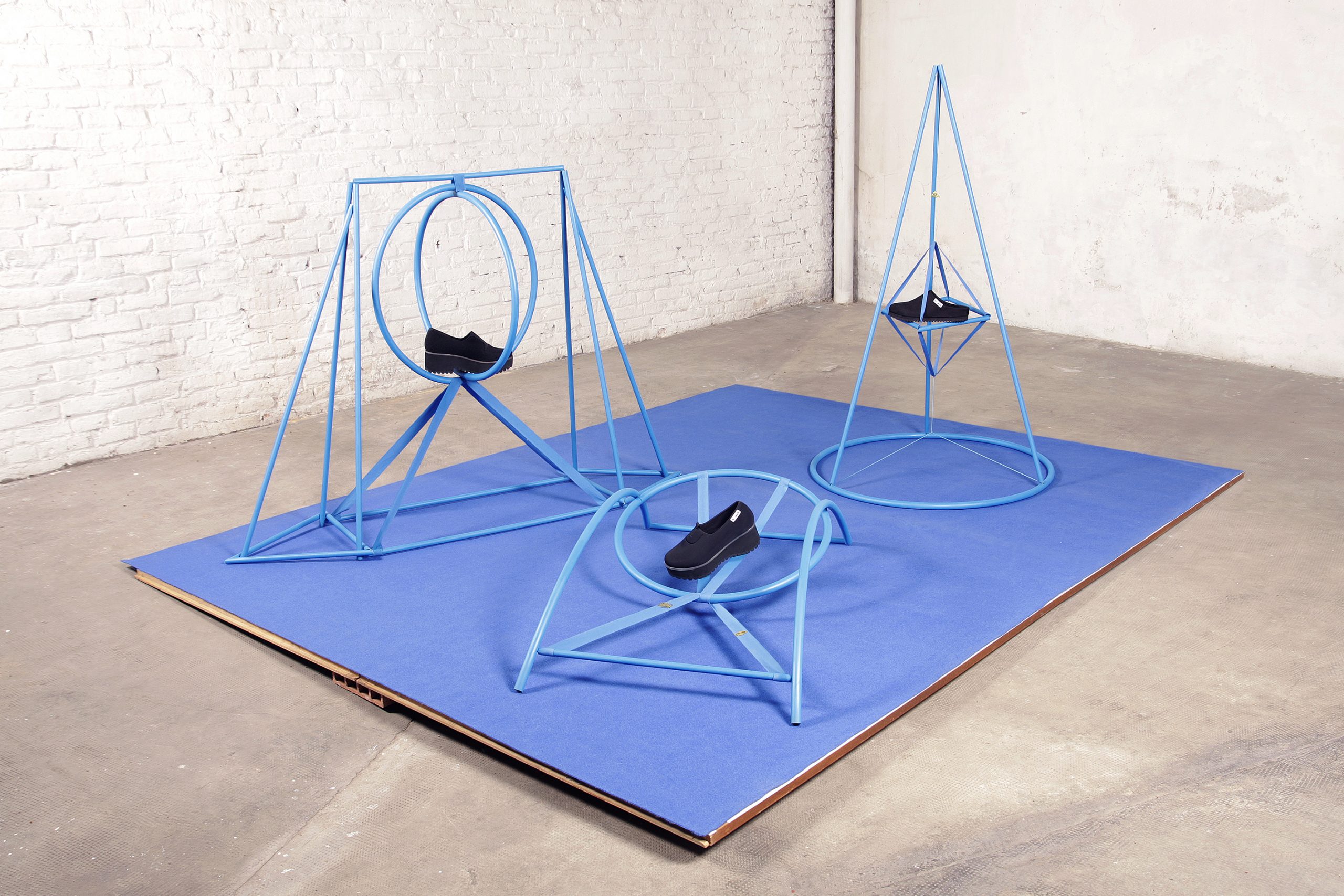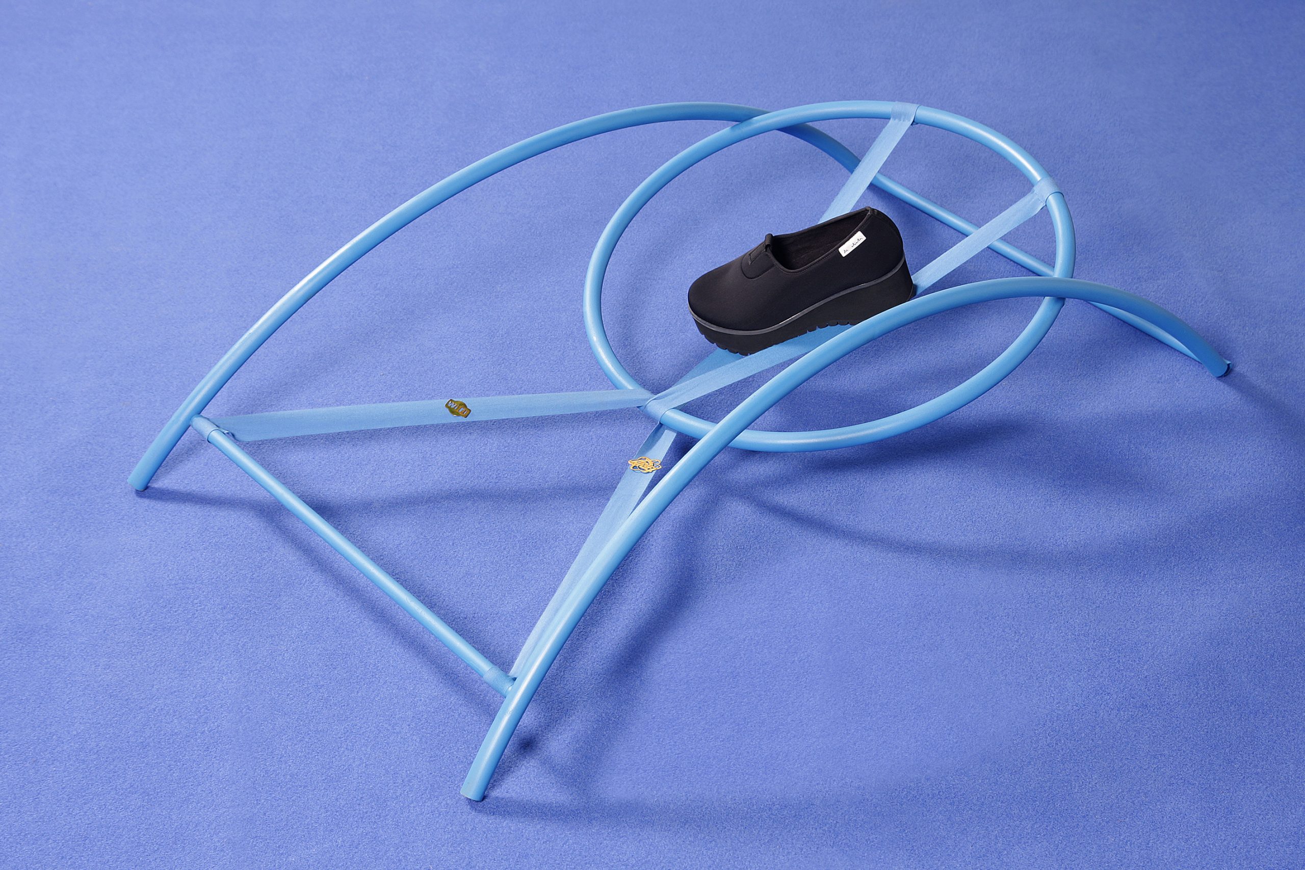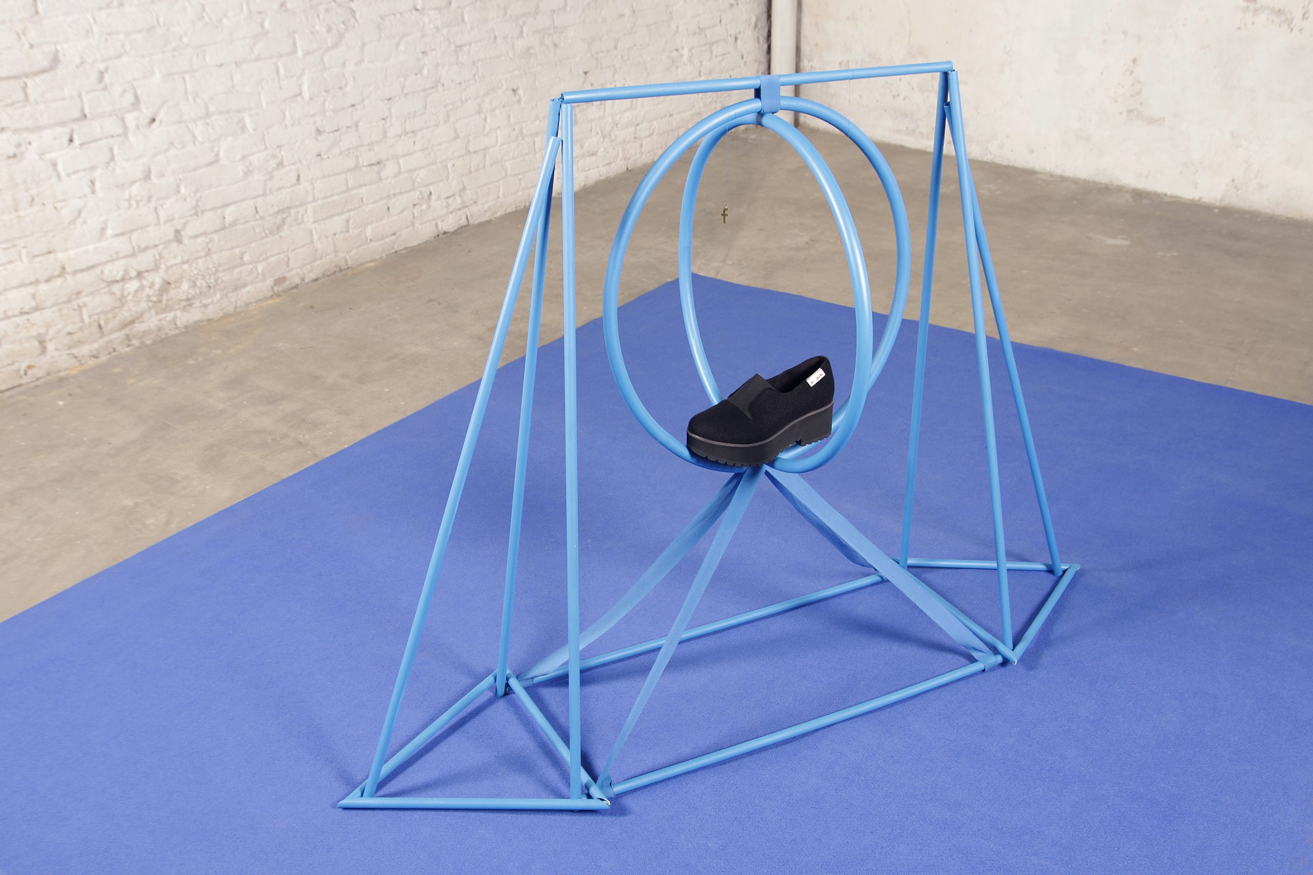 Amorf Etern: materias adaptadasObjetos en desuso: 30 kilos de calzado de segunda mano de la empresa Solidanza. Se combinaron partes de diferentes tipos de calzado entre sí, desdibujando sus funciones iniciales y buscando nuevos usos y ubicaciones en los nuevos modelos.