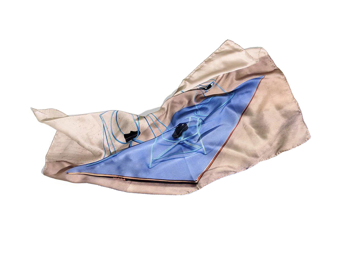 Pañuelos de 100% seda (69cm x 103cm) y publicación.