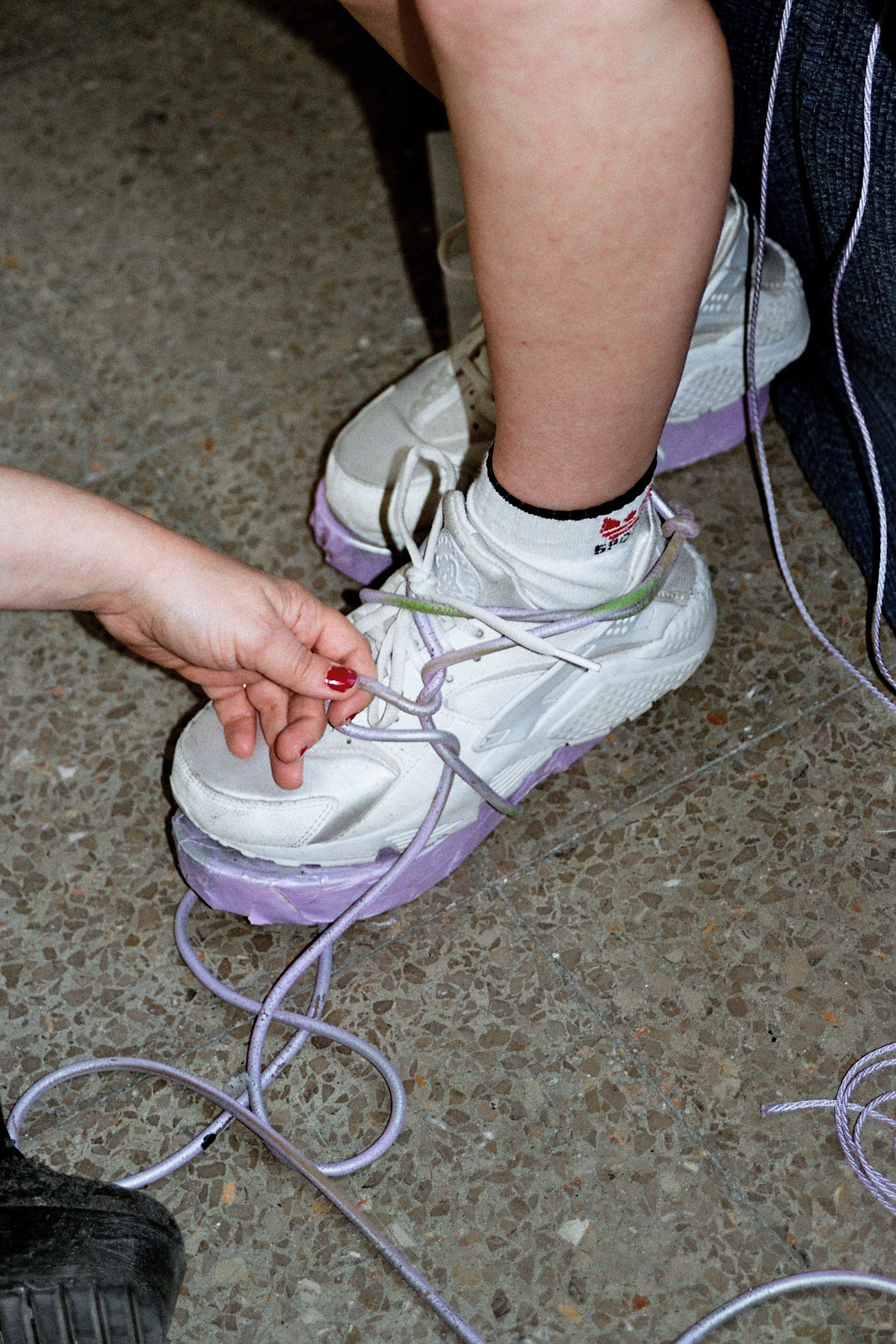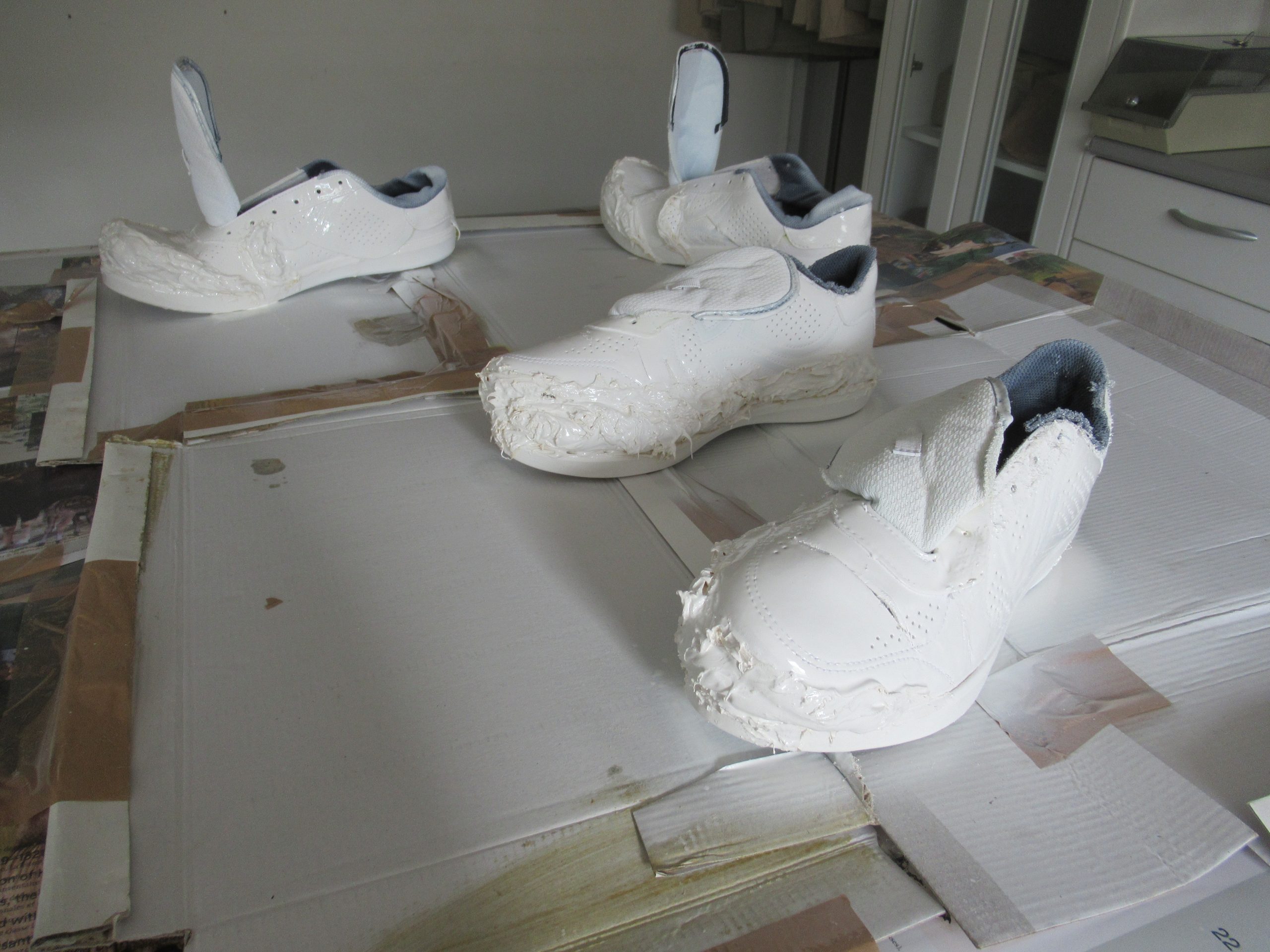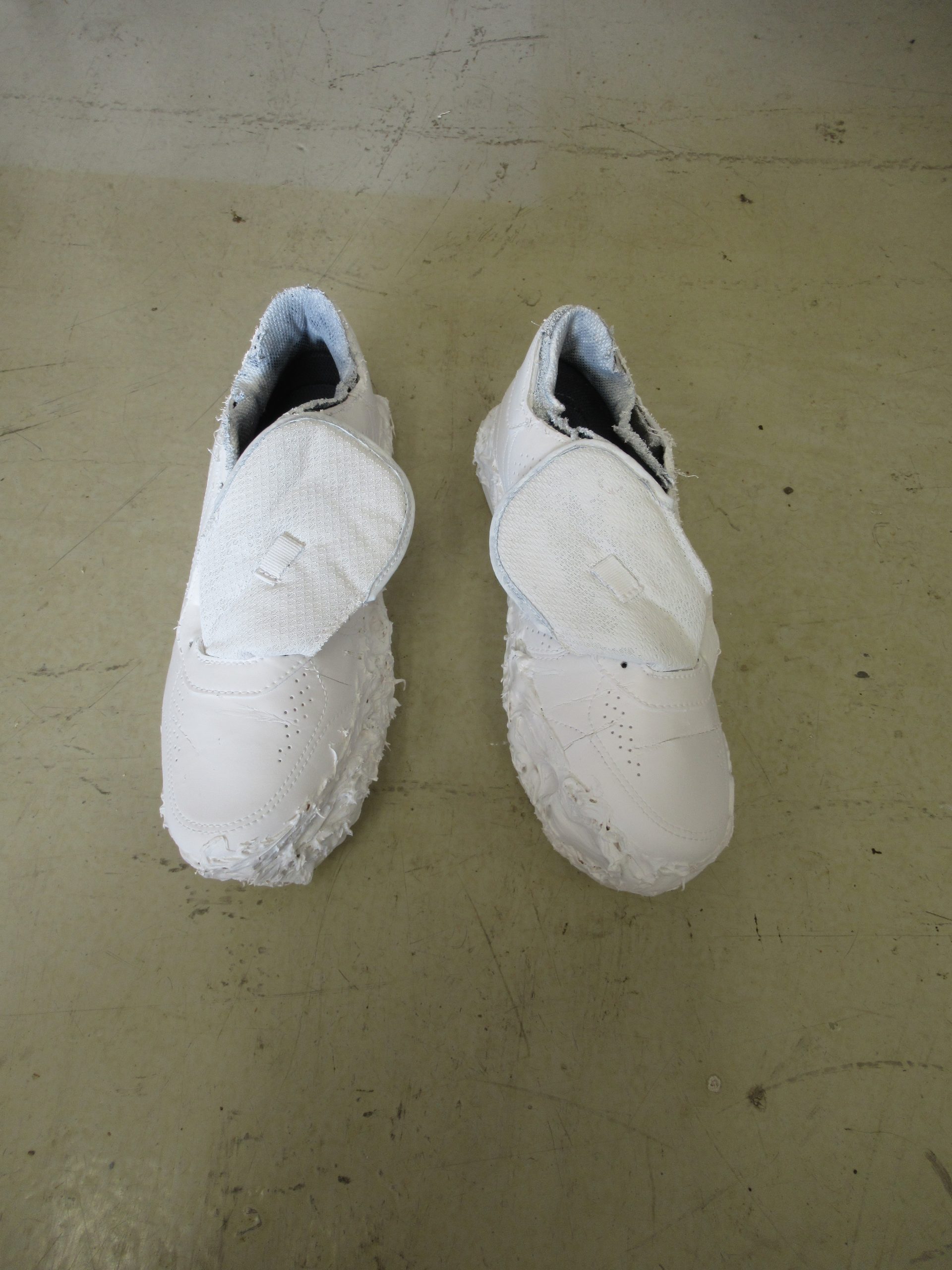 Colaboración en la creación de calzado efímero para la presentación de la colección de ropa Gran Bassin donde se trabajó diferentes vías a partir de la deformación de la zapatilla tennis.