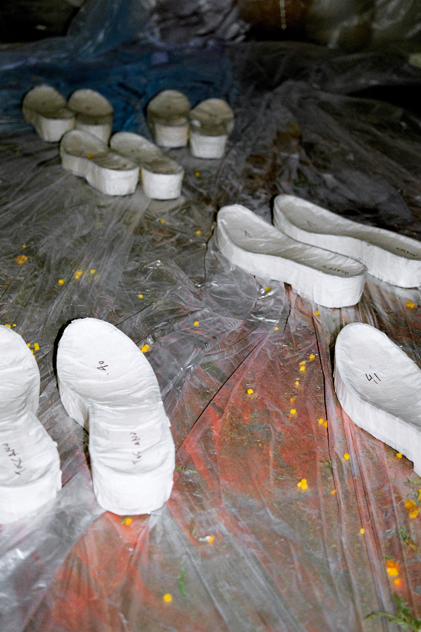 Colaboración en la creación de calzado efímero para la presentación de la colección Stola del proyecto Meseta de la diseñadora y artista Laura F. Antolín.